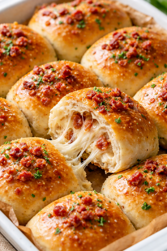 These Cheesy Bacon Stuffed Rolls are soft, fluffy, and filled with melted cheese and savory bacon in every bite. Perfectly golden on the outside and irresistibly gooey on the inside, they are ideal for brunch, parties, cafés, or as a comforting snack served warm straight from the oven.