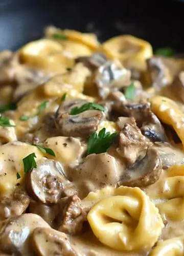 Skillet Beef Stroganoff Tortellini in Creamy Sauce 🍝🍖🧄🌿
