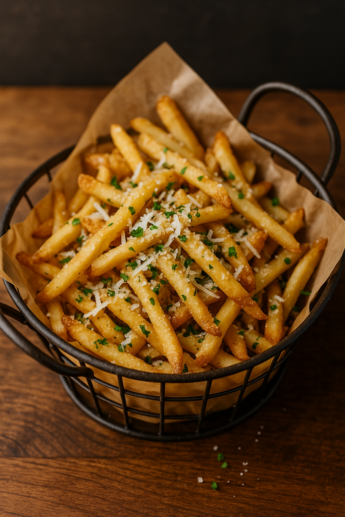 - Transfer hot fries to a large bowl. Drizzle with truffle oil and toss gently.