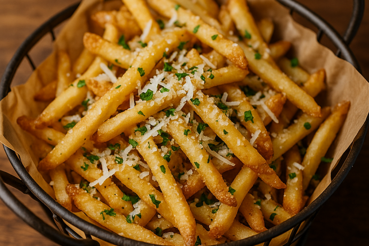 - Transfer hot fries to a large bowl. Drizzle with truffle oil and toss gently.